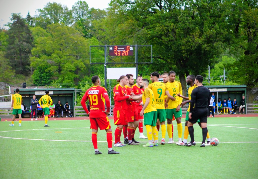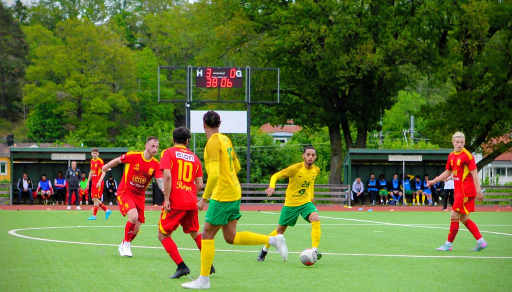 Skytteligaledaren Jemal ville inte vara sämre – i 35′ kom han också in i målprotokollet efter ett riktigt skolboksanfall 🎼 Brwa agerar felvänd target, spelar rättvänd mittfältare som hittar Jemal fint i djupet – 3–0 och matchen känns i princip avgjord redan här. 4–0 hinner även halka in efter hörna där Bekolo knoppar dit den precis innan halvtidsvilan.