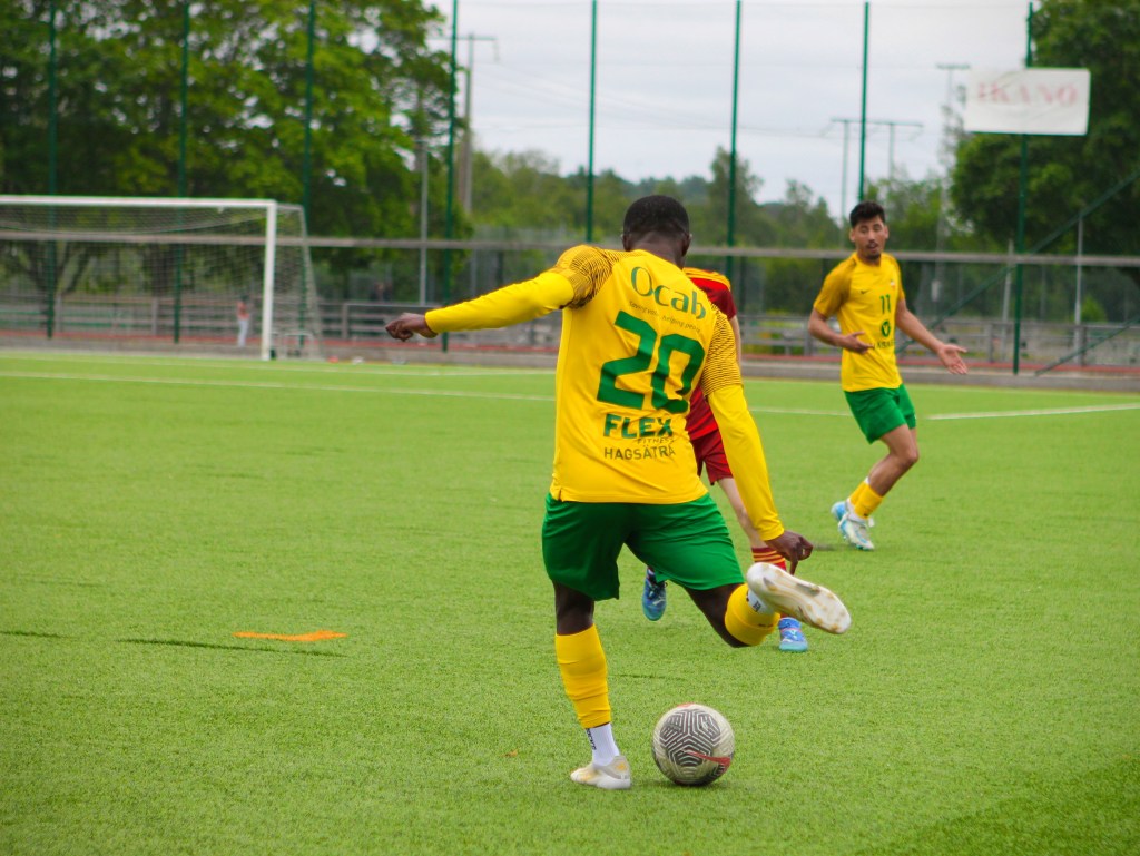 Mål skulle det dock bli: 18’ tar nr 11 Jemal sig runt på kanten och serverar nr 9 Brwa som enkelt rakar in 1–0 i öppen kasse ⚽️🔓 Efter målet ser hemmalaget mer avslappnat och börjar rada upp tryck.