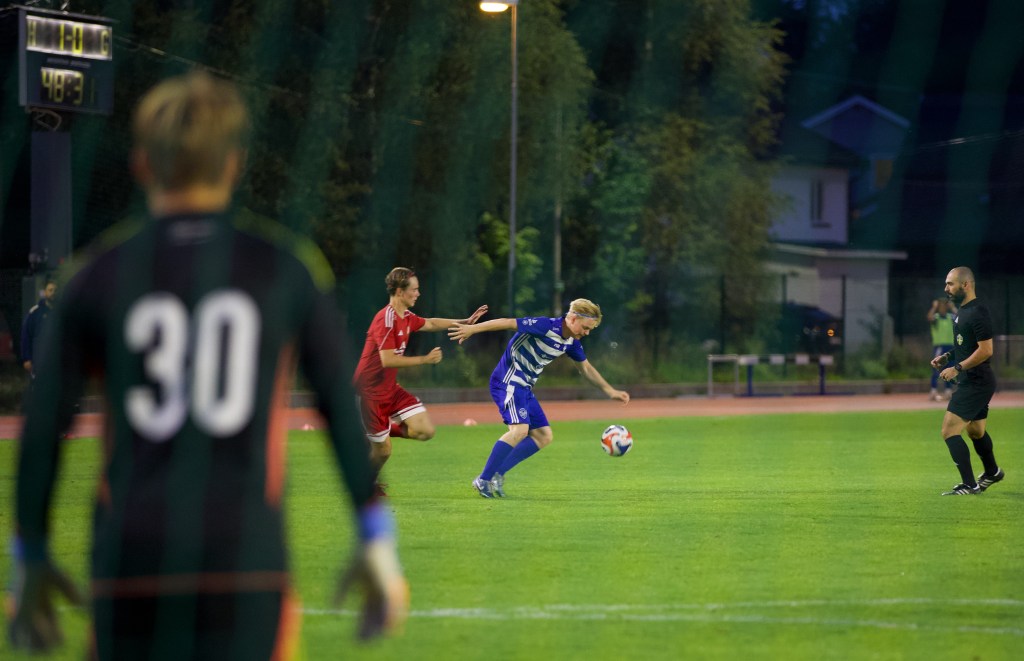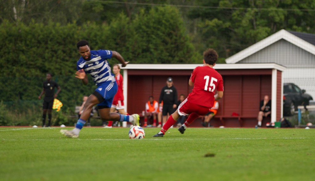 Det är en tajt match, Lidingö är ett bra lag. Vi byter formation till den här matchen och kör fyrbackslinje då de jobbar mycket med sina ytterzoner och vi ville täcka upp extra där. Vi låg ofta lite lägre och ställde om på dem, så vi följde matchplanen och det funkade. Det känns jättebra.