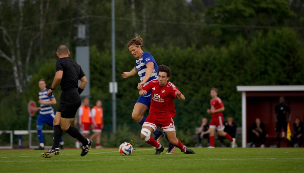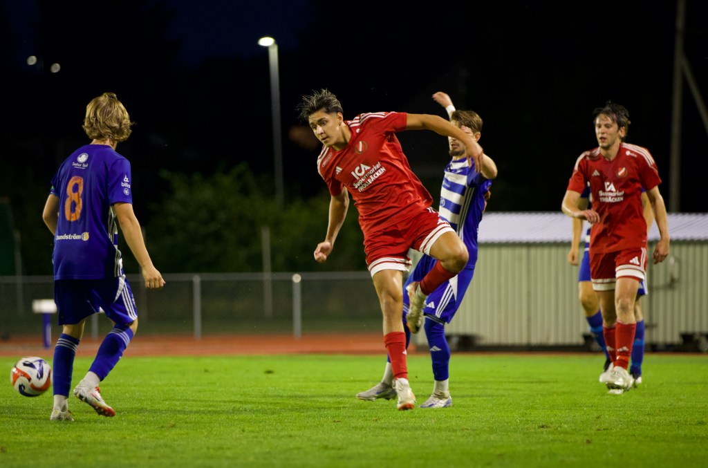 I den 35:e minuten var Lidingö nära igen när nr 8 Valter Forsberg sköt från distans – ett skott som styrdes farligt men reflexräddades fint igen av Lindeberg. Strax därefter skapade Hanviken återigen via Embring ännu ett läge när den snabbe yttern tog sig runt på vänsterkanten och slog in bollen otäckt mellan målvakt och backlinje, dock utan att någon medspelare hann hugga.