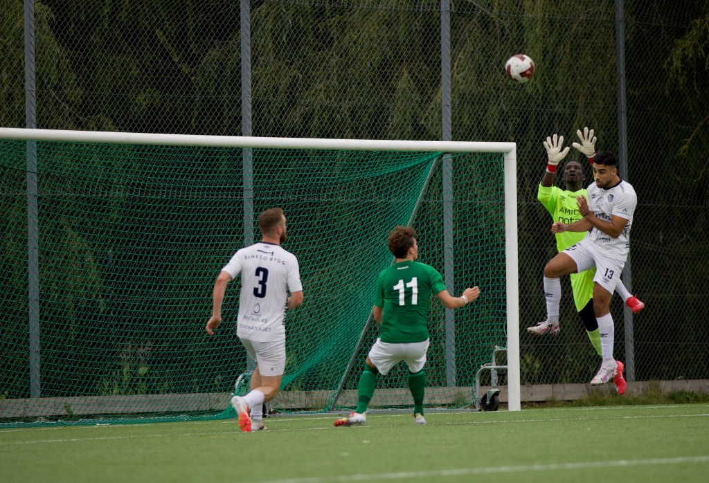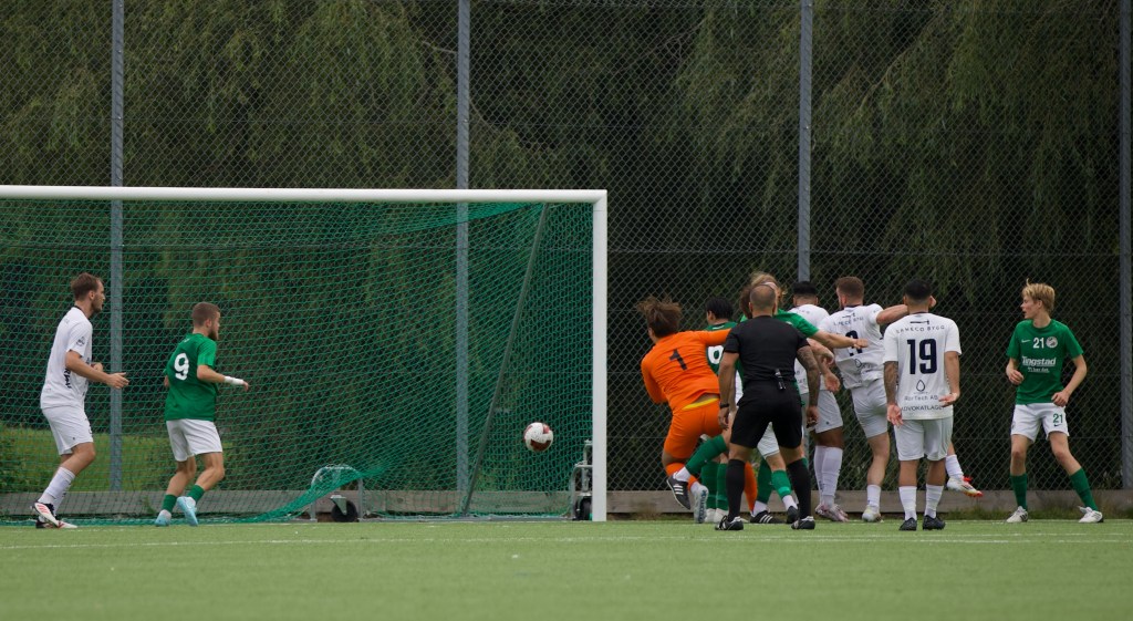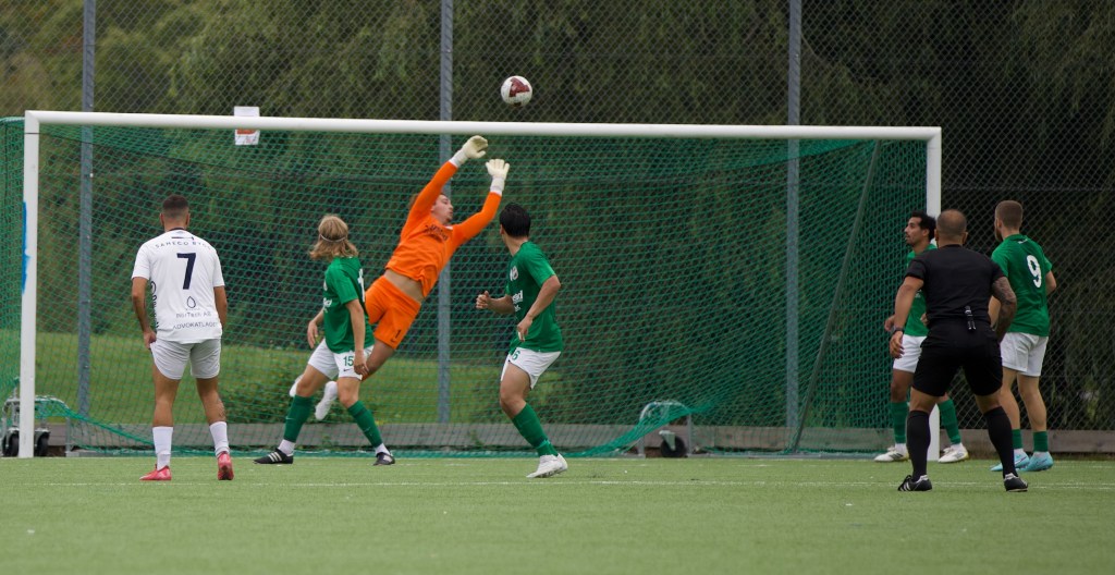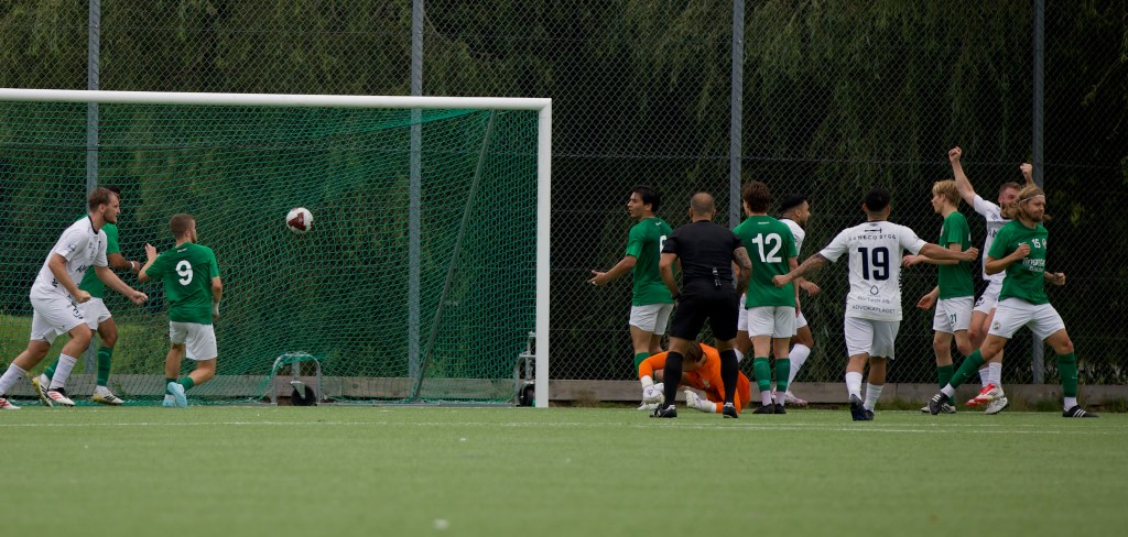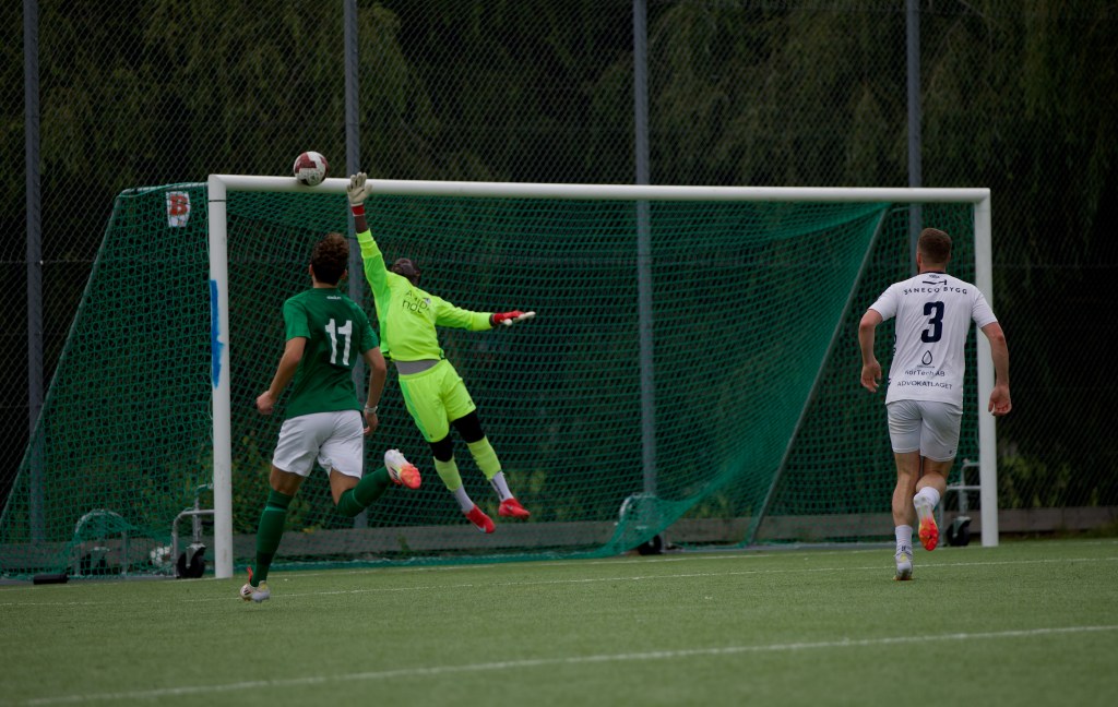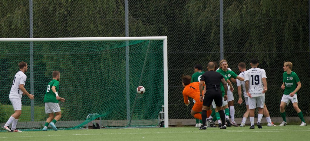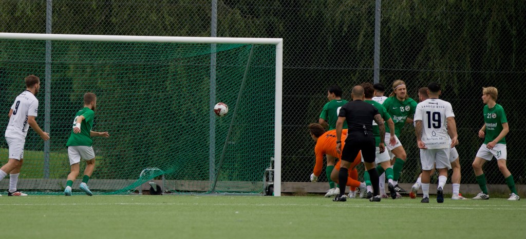 Bara minuten senare var Fittja ännu närmare ett ledningsmål – och det var ungefär så nära som man kan komma utan att bollen faktisk går in. Återigen var det Opazo som hittades på högerkanten, den här gången valde han att spela in bollen mot straffområdet. Bollen rann förbi flera spelare innan den hamnade hos vänsterbacken Kevin Isaza, som fyllt på vid bortre stolpen. Han fick ett gyllene läge och drog till direkt, men skottet blockerades av en Reymersförsvarare. Returen utlöste fullständig kalabalik inne i straffområdet. Uppemot 7 avslut mot mål avlossades från nära håll, men varje gång kastade sig Reymersspelare uppoffrande och lyckades blockera. Till slut rensades bollen ut till hörna – men just när det kändes som faran var över så fick hemmalaget sitt ledningsmål.