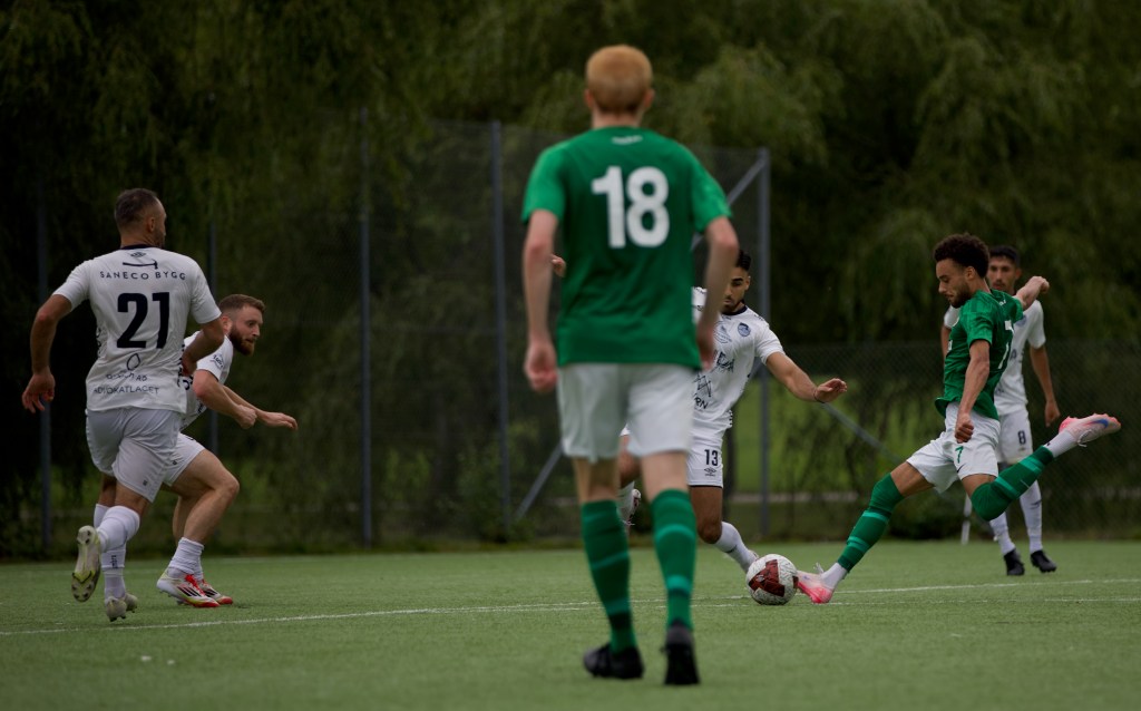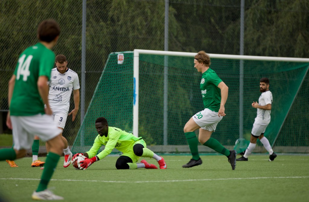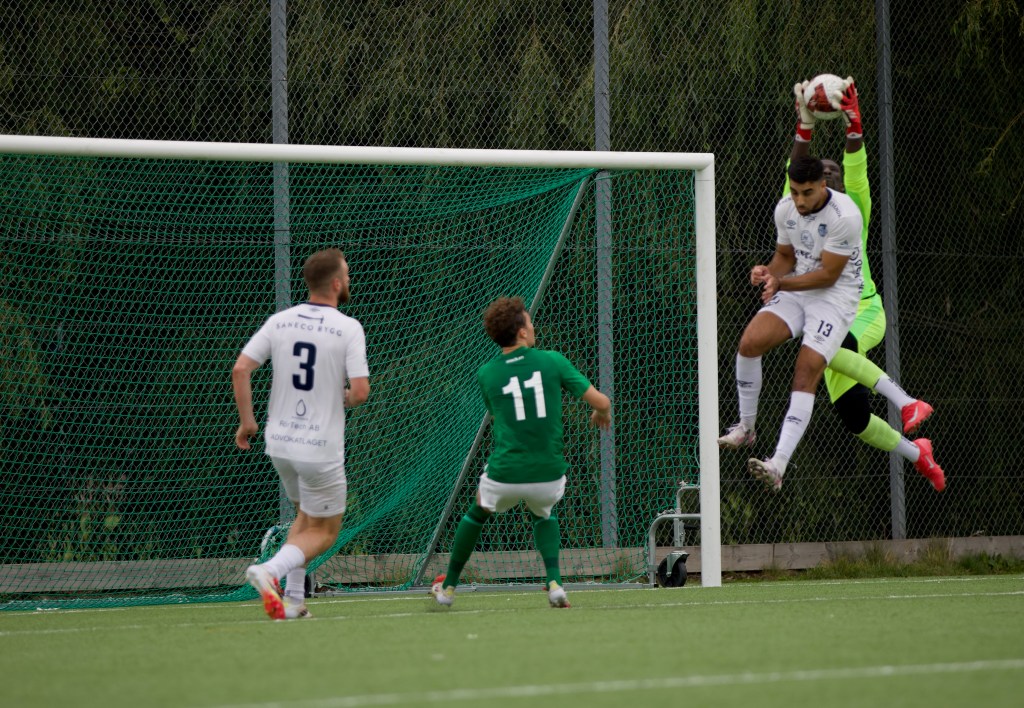Detta tog Fittja vara på där hemmalaget blixtrade till i halvlekens slutminuter. I den 41:a minuten fick man först en riktigt stor möjlighet efter en välavvägd krossboll ut mot högerkanten. Lagkaptenen Jonathan Opazo kom fri med Reymers målvakten Carl Persson, men ur snäv vinkel gick avslutet rakt på målvakten som kunde rädda.